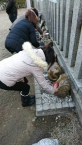 お参りを終えた方は、石に浮き出た蛇の模様に財布を当てて、金運アップを願っていました。